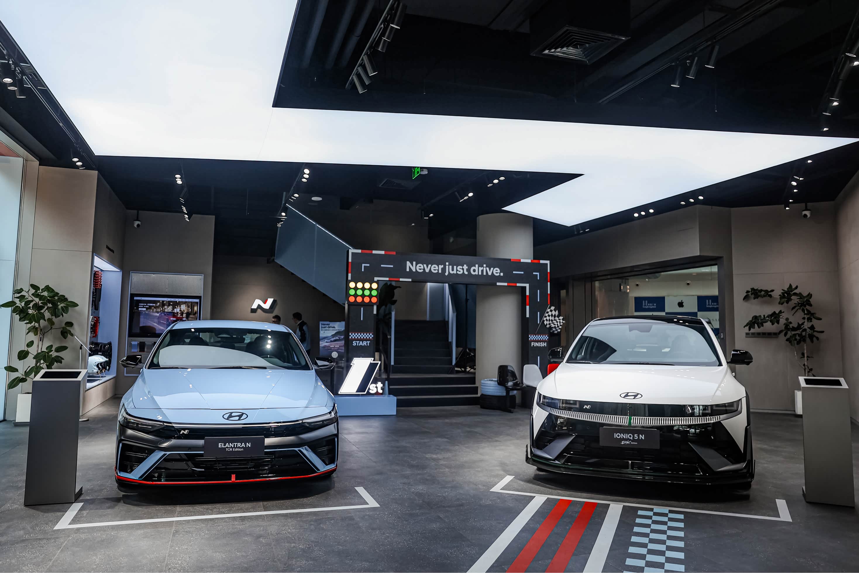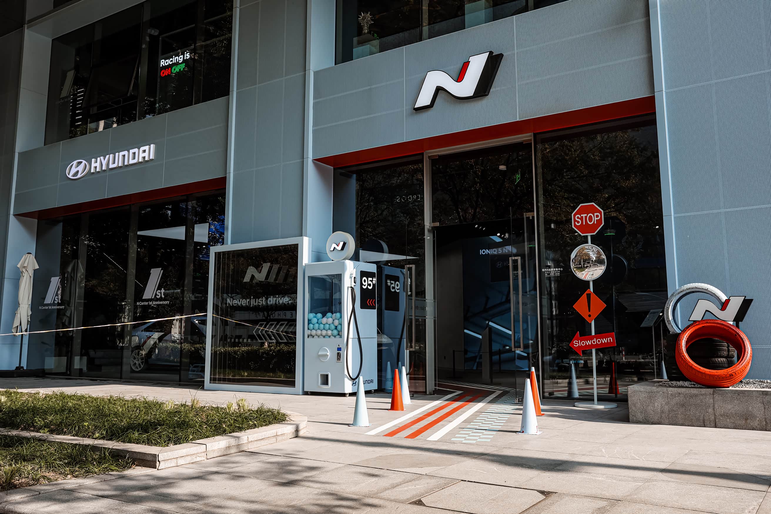 上周六去看了看现代汽车 N Center 上海开业周年庆典。 Elantra N TCR Edition、IONIQ 5 N DK 限定版、Elantra N,三台性能猛兽摆在展厅正中央。现场不光能摸摸实车、听听声浪,还组织了模拟器趣味赛(还有方向盘反向操作模式,操作略捉急)、专属的DIY 香氛卡钳。 既有性能干货,还有趣味互动,周末路过逛逛,挺有意思。