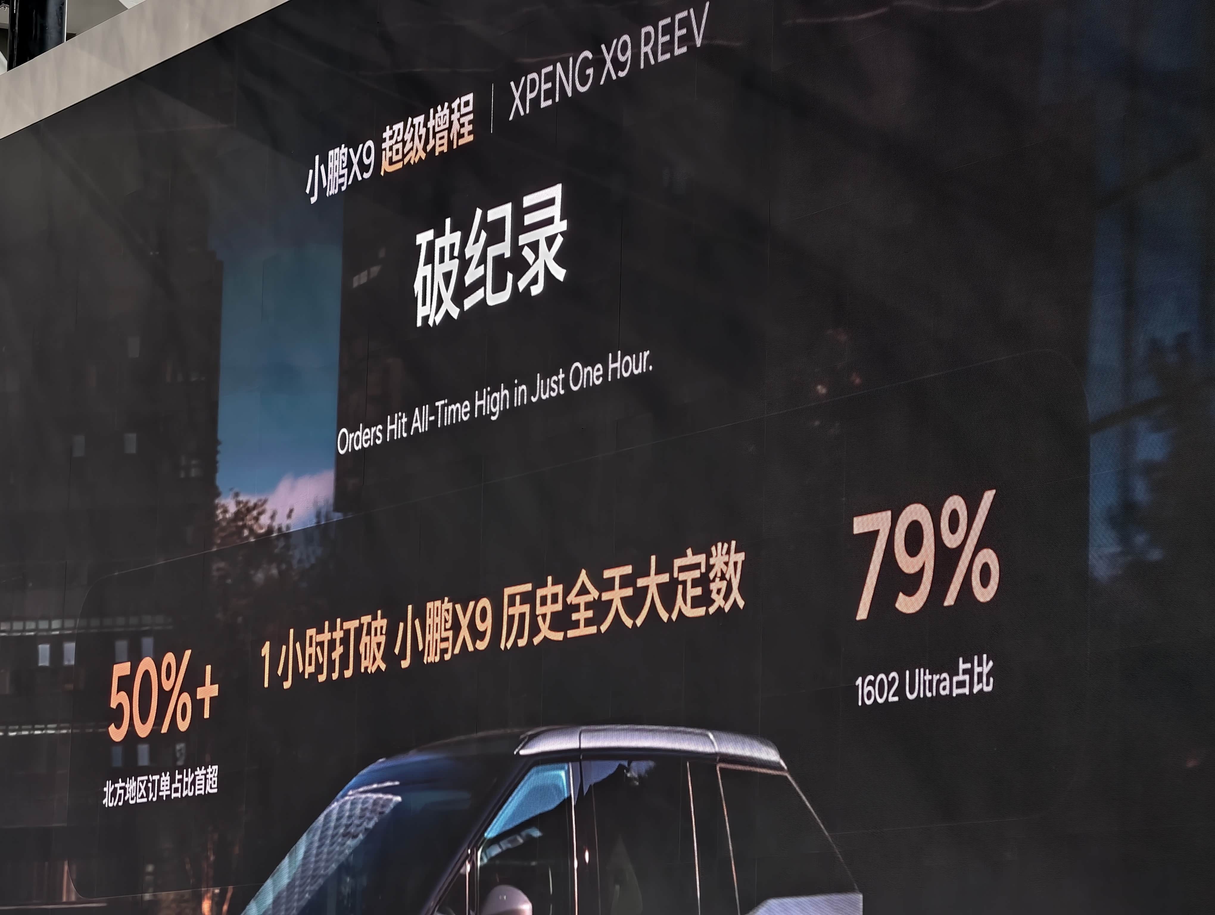 昨天晚上刚刚开完发布会,今天在车展上小鹏还能聊一些啥呢?他们竟然还是有不少新的消息。 昨天晚上X9 REEV订单分布,北方用户占了50%+,说明不少北方用户正在等这么一个产品。Ultra版本占比79%,智驾的溢价被肯定。 明年Q1马上会有很多新的REEV产品跟上。但是差异化竞争的难度肯定会比非常有特色的X9难很多。 从0到50万台,小鹏用了82个月,50到100万是14个月。 但更吸引人的还是X9这套增程后桥。展具上还没有做出排气管来(图9位置)。如果放上去的话会更震撼一些。#新能源大牛说#