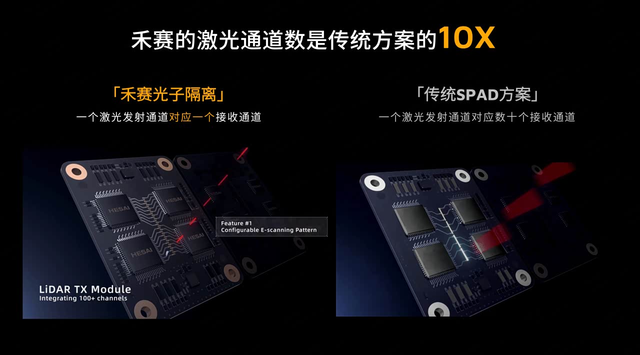 今天禾赛发布了基于RISC-V的激光雷达主芯片,并发布了256 线安全激光雷达 ATX 的「焕新版」。大概梳理一下亮点—— 首先是费米C500主打RISC-V架构带来的自主可控优势,适配车载芯片供应链安全与技术迭代自主需求,单芯片集成MCU、FPGA、ADC,是全球首款片上融合功能安全与网络安全双重认证的激光雷达专用主控芯片,从硬件层满足车载场景可靠性与信息安全要求。 根据禾赛的官方信息,他们是目前是唯一行业做到包括激光器、探测器、激光驱动器、TIA 芯片、ADC 芯片、数字信号处理器和控制器七大关键部件全栈自研的激光雷达公司。截至 2025 年 11 月,禾赛共有 16 款自研芯片获得 AEC-Q 车规认证,已累计交付达 1.85 亿颗(指自研芯片和半导体器件累计交付量,单颗雷达需要非常多的芯片)。 发布会上禾赛梳理激光探测技术路线,提及905与1550nm路线已显优劣差异,同时指出所有激光雷达均含模数转换环节、终输数字信号,工作原理类数码相机,行业主流APD、SiPM、SPAD三种激光探测技术无优劣之分。是否如此,@万万_ECC 将带来深度解读。#新能源大牛说#