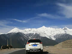 床车走新藏-过5千米的卡若拉冰川,走江孜驻车318线5千米纪念碑前