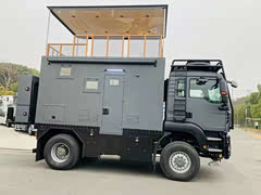 #重卡房车#二层阳台,增加了车辆整体的使用感受,天气好的时候喝茶聊天谈谈生意岂不美滋滋,但是个人体验感受,如果驻车支腿没有撑稳站子上面还是会比较摇晃的,所以使用时候一定要注意。
