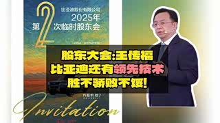 股东大会王传福:“比亚迪还有领先技术,胜不骄败不馁!”