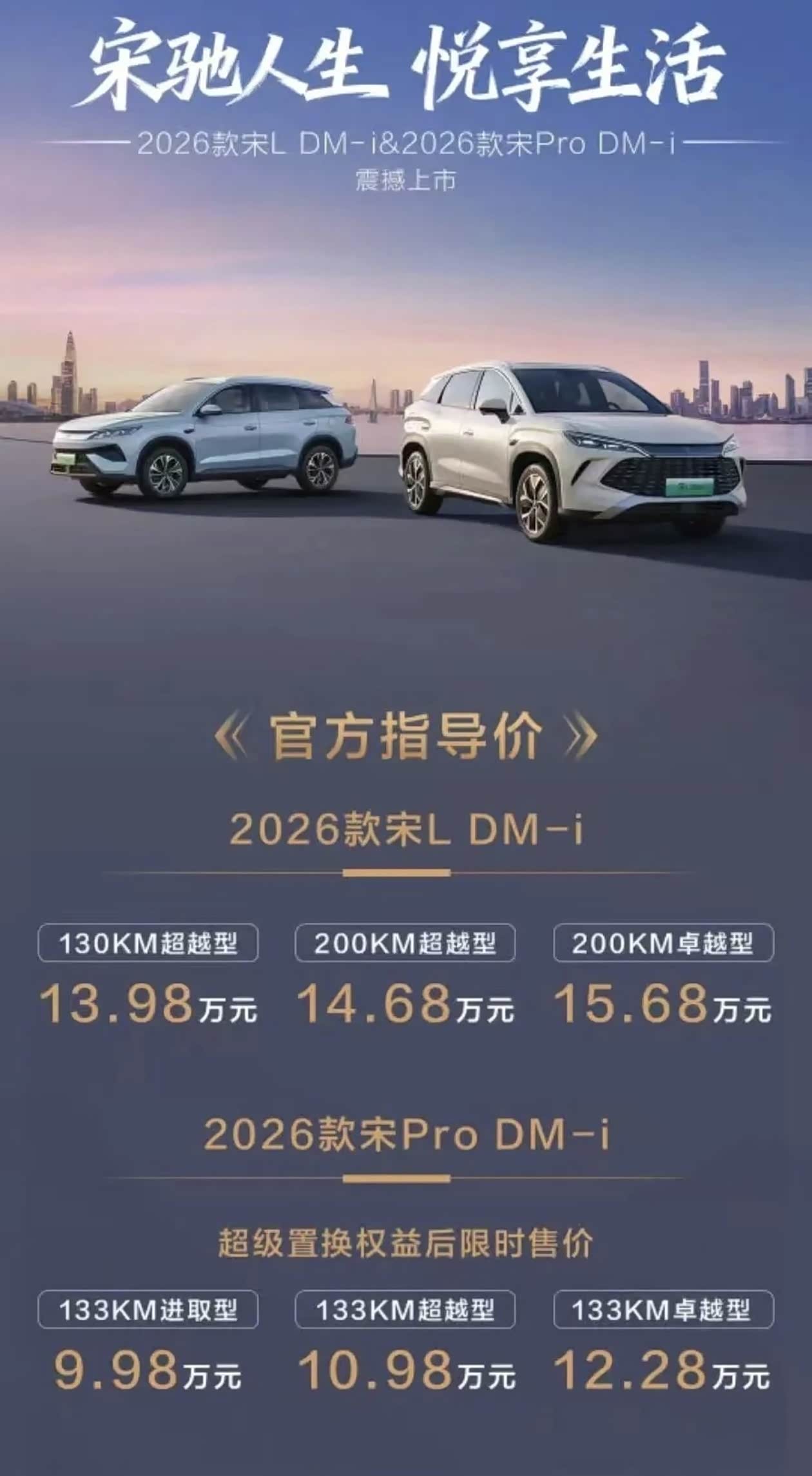 比亚迪三款2026款新车重磅上市,加量还降价,售价下探至9.28万元起,配置升级彰显“硬核”实力 近日,比亚迪旗下主力车型——2026款秦L、2026款宋Pro以及2026款宋L正式宣告上市,以极具竞争力的价格和全面升级的“硬核”配置,再度点燃市场热情。此次新品矩阵的推出,尤其以低至9.28万元的起售价,被业内视为比亚迪在巩固主流市场霸主地位的同时,进一步强化其“油电同价”战略的又一记重拳。