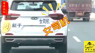 女司机油门刹车搞混乱,男司机背后直冒冷汗!