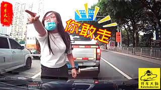 女司机加塞恼羞成怒,猛打嘴仗当街堵路!