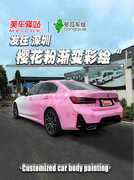 今日的樱花粉色渐变汽车彩绘膜是发往深圳的~