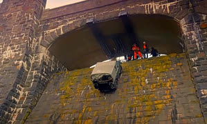 老外开路虎上近90°坡角的大坝,加钢丝盘吊威亚,比过山车还刺激
