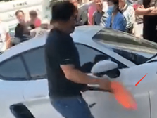 保时捷占用卖菜摊位,大爷拿出铁锹猛砸:让你耽误我赚钱