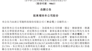 #汽车资讯# #汽车# 【#零跑汽车# :董事长朱江明及傅利泉增持215.06万股H股 增持金额超1亿元港币】 零跑汽车公告,董事长兼首席执行官朱江明及股东傅利泉近期于市场内合共购入215.06万股公司H股,平均价格为每股股份约50.51港币,共增持金额超1亿元港币。本次增持后,朱江明及傅利泉与所属的单一最大股东集团合共持有公司2.09亿股H股及1.29亿股内资股,占公司已发行总股数的23.75%。