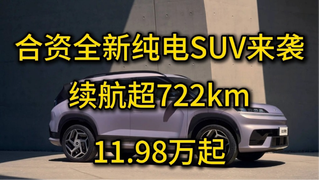 合资全新纯电SUV来袭,11.98万起,配两驱+四驱,续航能跑722km!