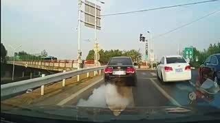 前车突然侧漂,女司机吓坏了,6连大喊“快、快、快”