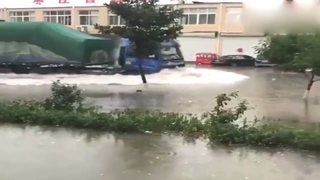 监控这大货车真是霸气,走积水路段,一个浪把小黑车都冲起来了