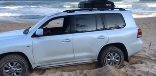 这是丰田酷路泽, 刚进沙滩就成这样了, 车主想哭的心都有了