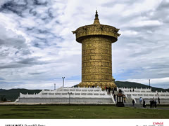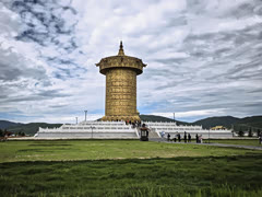 玛曲阿万仓宁玛寺:世界最大转经筒 路上远远就看到一个黄色的建筑,这时候我们知道,阿万仓宁玛寺快到了! 阿万仓宁玛寺位于甘肃省甘南藏族自治州玛曲县阿万仓乡,它修建于公元1834年,属藏传佛教宁玛派寺院,就是我们所说的红教。 它最大的标志性建筑,就是世界最大的藏经转经筒,高42.38米,采用60公斤黄金装饰,内藏11万册佛教经典,2018年建成后载入吉尼斯世界纪录。 小贴士: 1 转经筒核心寓意在于通过转动等效诵经积累功德,核心作用体现在修行助力和文化传承两方面,所以你在进藏路上能见到各式各样的转以筒,有水力的,有风力的, 甚至还有畜禽拉动的! 2 阿万仓宁玛寺转经筒不收门票,但旁边的宁玛寺为了不影响喇嘛们清修,是闭寺不接待任何人员。 3 转经筒附件禁飞无人机。 推荐指数:★★★★