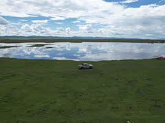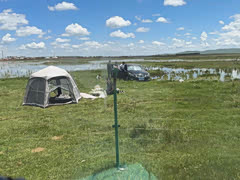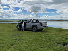 从多山丘陵地貌出来,视野一下子就开阔了! 昨天晚上夜宿安曲镇,因为到的时候已经天黑了,所以没有发现公路两边的美景是如此的漂亮! 今天是整个行程的第二天,先去附近的月亮湾瞧瞧!在这里,白河在草原上画出优美的弧线,远看就像一轮弯月。 这个月亮湾位于红原县城附近,关于这名字呢,还有一段凄美的爱情的传说。相传,山神嘎曲与牧民女子的坠入爱河,但因触犯了戒律,导致最后殉情。这一悲剧触动了神明,使得河流变成了月牙的形状。 在月亮湾的停车场,碰到一群出来自由行的老大哥老大姐。他们对我这台车很感兴趣,我就给他们讲解电皮卡的好处,比如继承了皮卡优秀的装载性和通过性,比如你看我这一大堆东西,都能装下!通过性就更别说了,就算这一路上再烂的路和炮弹坑,我都能轻松应对!再说说这个新能源的特性,我路上随时能喝热水用微波炉加热,这真是羡慕死他们了! TIPS: 1 一般来讲,去若尔盖草原或者黄河九曲第一弯唐克镇的都会经过这里,前面有一个专门的观景台,门票加观光车是58元,性价比不高,但是站在高台能看到这种曲折的景色。 2 月亮湾停车场不收费,适合露营,旁边白河可以取水,但是温差比较大!