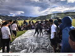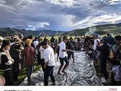 突然,我们看到前面草地上有一群人在围观,还传来喧闹声,走进一看,原来这是一年一度的藏式摔跤比赛。 要知道,藏族人民一般都居住在海拔4000m以上,由于海拔高,且寒冷缺氧,藏族同胞需要经常趟着雪,翻山越岭,肩挑背负,养成了坚忍不拔的性格和吃苦耐劳的精神,同时锻炼出了强健的体魄。 特殊的生存环境使他们意识到必须发展锻炼自己的肢体能力,才能应付严酷的自然界,与此同时也就孕育着摔跤产生,但是我见过在草地上,在雪地里,但是在肥皂水充斥的塑料垫上这是几个意思? 不得不说,这是一个新颖的创意,肥皂水的湿滑让很多选手都不适应,在这里一个瘦子也有可能绊倒一个身体占优势的胖子,也许就是这项运动的公平之处吧,恩,全民皆可参与! 比如你看这个金手镯和这个蓝裤子,最后,唉,还是实力说话呀! 这两位的实力还是相当的,就是这哥们的眼神暴露出胜负心重,但是一个甩出,还是被压在了身下! 第三组比赛时,连观众都屏住了呼吸,这就是比赛的魅力! 不要问我用啥手机拍,这样瞬间即逝的画面都被我抓拍到了?我也没法挂小黄车,为啥?这机器本来就畅销,不需要我做广告的!华为PURA80系列,你值得拥有! 推荐指数:★★★★ 推荐理由:可遇不可求的盛会,你还要求啥?