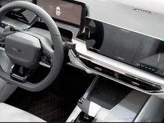 问界M5到店,外观方面,问界M5整体造型比较简约,大尺寸的梯形进气格栅内部做了熏黑处理,搭配上横置的银色镀铬饰条装饰,营造出不错的冲击感。 左右两侧的前大灯组采用的是照明效果比较好的LED光源,内置“L”型灯带,有着不错的辨识。车身侧面,整体造型比较修长,溜背式的造型设计营造出不错的运动氛围,同时,微微上扬的腰线设计,进一步提升了车身侧面的运动氛围。隐藏门把手和后排隐私玻璃也没有缺席,进一步提升了车身侧面的档次感。 车身尾部,贯穿式的尾灯内部做了熏黑处理,搭配上红色的灯带设计,营造出不错的层次感,夜晚点亮后有着不错的辨识度。宽大的黑色下包围在提升运动感的同时有效地保护了底盘。 内饰方面,整体造型比较有层次感,中控台上下分层式的设计采用了深浅色搭配,中间添加了仿木质花纹的饰板,有效的提升了中控台的层次感。