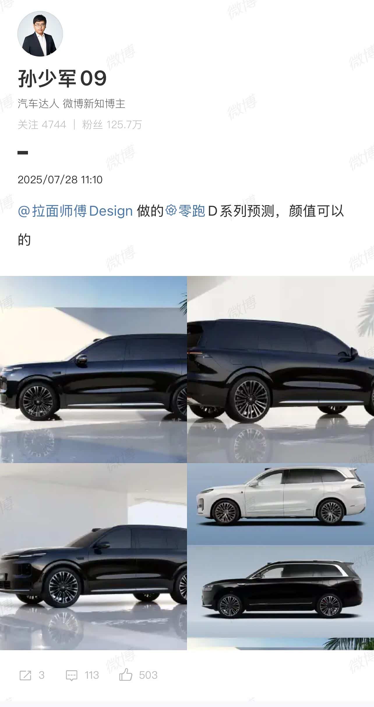 网上看到零跑准备要出D系列,还出了假想图!据朱总透露D系列定价在30万左右,会把造车10年来的技术结晶都用到D系列上来,可以看到零跑开始布局豪华车了。根据假想图可以看到D系列这台车尺寸对标L9,有激光雷达和六座。但零跑真要在这个价位站稳,光靠堆料可能不够——毕竟这个价位的买家更看重品牌溢价和完整度。 前面C系列比如C11和C10积累的口碑是优势,但D系列要面对的可是理想、问界这些已经把用户体验卷到极致的老手。就看零跑这次能不能在保持价格优势的同时,把豪华感和完成度真正提上来了。