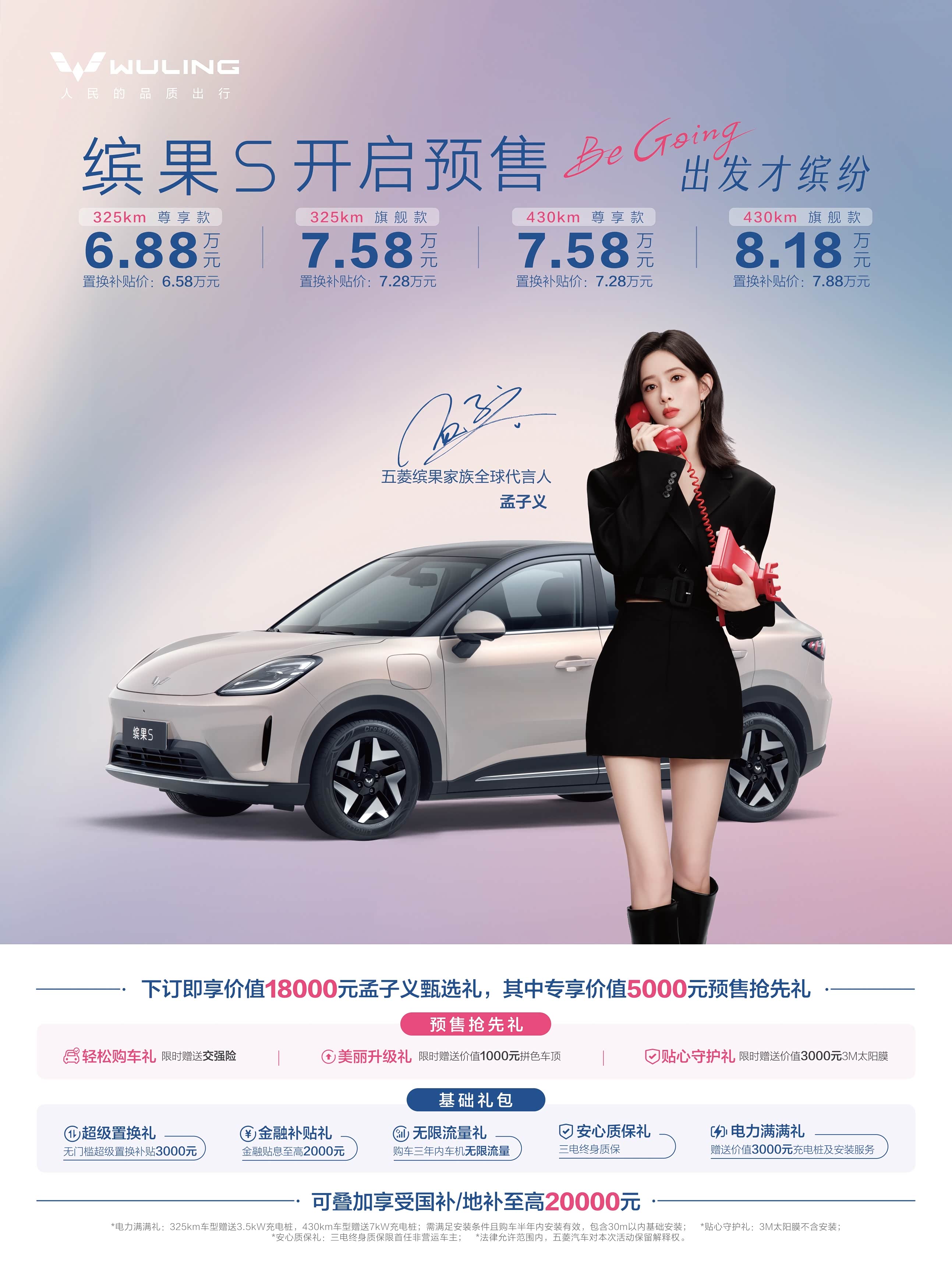 日前,五菱缤果家族迎来新车缤果S全球首秀暨预售开启,售价6.88-8.18万。缤果家族全球代言人孟子义,也在现场分享了她的缤果S用车之旅,展现了该车带来的便利。 从年轻消费者来感受缤果S,我认为很多朋友都会喜欢这套设计。作为缤果家族新成员,缤果S设计并没有偷懒,采用全新鎏光美学外观设计与舒屿座舱,不仅颜值在线,品质和实用性更是能打。 像我高度关注的座舱,缤果S用柔白、暖棕双暖色调内饰为基调,还铺设了3D质感木纹工艺饰板和大面积皮革包裹,以及8.88英寸全液晶嵌入式仪表+12.8英寸中控屏,兼顾设计美感和科技功能。 并且,缤果S轴距超过了2米6,能在后排给到882mm腿部空间,前排头部空间也有1008mm,即使有家用需求,或周末邀上三两好友出游、露营,给到实用五座空间的缤果S,都不会掉链子。毕竟,在5座空间基础上,缤果S还有25处人性化储物空间、后备厢下沉式设计、至高1450L装载容积等储物空间,实用性大可不必担心。 还有大家关心的续航,缤果S将提供325km、430km纯电续航可选,满足城市代步、周末出游等用车需求,问题都不大,且价格友好,也让性价比得到凸显。