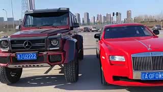 劳斯莱斯和奔驰大G在一起,德系顶级豪车的碰撞,大红色很少见!