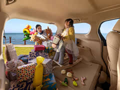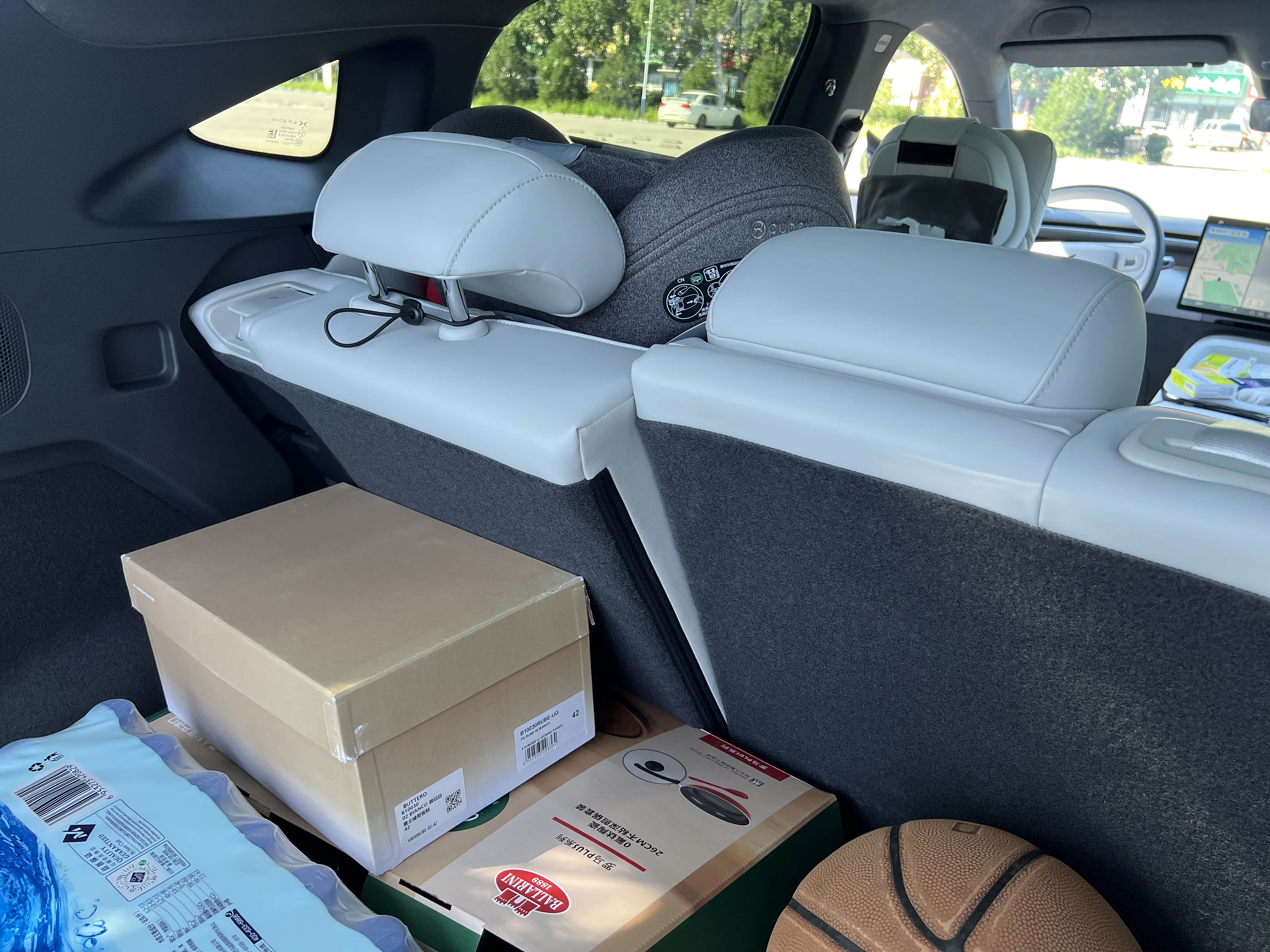 周末带孩子一起去超市采购,后排带安全座椅满员是挺宽裕的。车顶造型不溜背,相对平直,再加上全景大玻璃(亲测不晒),所以头部是不会压抑的。 坐垫比较宽大,坐起来舒服,中间位置的柔软度和两边也没什么明显的区别,孩他妈长期坐中间位置,表态舒适性可以,靠背也不算硬,家庭和睦得以保证。而且中间地台全平,这就对带娃家庭很友好,毕竟带娃家庭后排一般是小宝宝+妈妈+带娃老人或保姆的三人组合,这样后排人员上下车不用费力跨踩地台,照顾宝宝时转身、递东西也更灵活,不会被凸起的地台绊到或受限,日常带娃出行也减少了很多不必要的麻烦。 我家孩子现在说坐车去玩都说要坐新买的SUV(我教过他各个车类型的不同),3岁整可以自己爬上车。 我车里长期会放上我锻炼用的一堆东西,运动鞋,清洁车的工具。在这个基础上,再塞进童车、背包和从超市买的东西一大堆东西:小孩玩的平衡车和玩具、屯的食物、大件的矿泉水,都是大家伙~也完全没问题。 这还没算盖板下的千斤顶、玻璃水,以及完全空置的前备箱,这种载物能力很给力了。 综合看,G7轴距不到2.9米的中型SUV综合空间实力肯定是达到了3米轴距中大型SUV的水平。