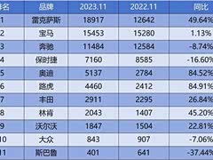 1-11月进口豪华车销量榜,BBA仍强势,保时捷、雷克萨斯失宠
