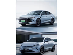 比亚迪秦L EV与DM-i虽同属“秦L”家族,但纯电与混动的定位差异在外观设计上体现得尤为明显。 1. 前脸设计:封闭简约 vs 传统动感 秦L EV:采用王朝网“龙颜美学”设计语言,封闭式前脸无传统进气格栅,搭配贯穿式银色饰条与LED大灯一体化造型,灯组内部为鳞片式结构,日行灯带为“龙须”设计并布置在大灯下方,整体风格简约前卫,更接近汉EV的科技感。 秦L DM-i:保留传统燃油车元素,配备大尺寸进气格栅,内部为点阵式镀铬装饰,两侧大灯组集成于日行灯带下方,前包围线条更硬朗,强调运动感和层次感,整体更显沉稳。 2. 侧面造型:低趴流线 vs 传统比例 秦L EV:基于e平台3.0 Evo打造,车身更紧凑(长4720mm,轴距2820mm),采用短悬长轴设计,侧面线条流畅饱满,配备半隐藏式门把手降低风阻(风阻系数未公布,参考同级约0.23Cd),18英寸双五辐轮毂提升运动感,部分版本加入“水墨流苏”黑色饰条强化视觉张力。 秦L DM-i:车身尺寸略大(长4830mm,轴距2790mm),侧面线条更强调层次感,传统门把手设计,轮毂样式偏实用取向,整体比例更接近传统三厢轿车。