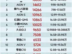 真惨,15-20万纯电车9月销量榜,宋第1、小鹏MO3第6、海狮第12