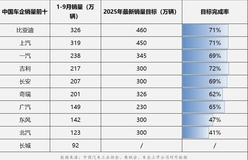 车市“金九银十”打响冲刺战,在这场冲刺战中, 比亚迪最新销量目标完成率71%,持续领跑,并锁定全年460万目标 吉利217万辆,完成率72%领跑。长安207万辆、一汽238万辆,均达69%;奇瑞201万辆、广汽149万辆,各取62%、65%。 随着“金九银十”销售旺季的全面开启,中国车市进入全年冲刺关键阶段。多家车企销量目标达成率亮眼,现在真的新能源在中国的渗透率 已经达到如此程度了,很明显接下来只有在技术迭代、产能布局、市场响应速度上持续突破的企业才有望达成全年销量目标,并为中国汽车高质量发展奠定核心竞争力。[good]#比亚迪[超话]##比亚迪##新能源汽车##金九银十什么车值得买#