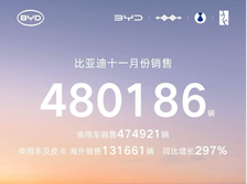 比亚迪11月销量突破48万辆,海外同比暴涨297%,累销破1470万