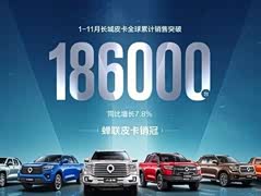 继续领跑全国,长城皮卡1-11月全球销量18.6万台,同比增长7.8%