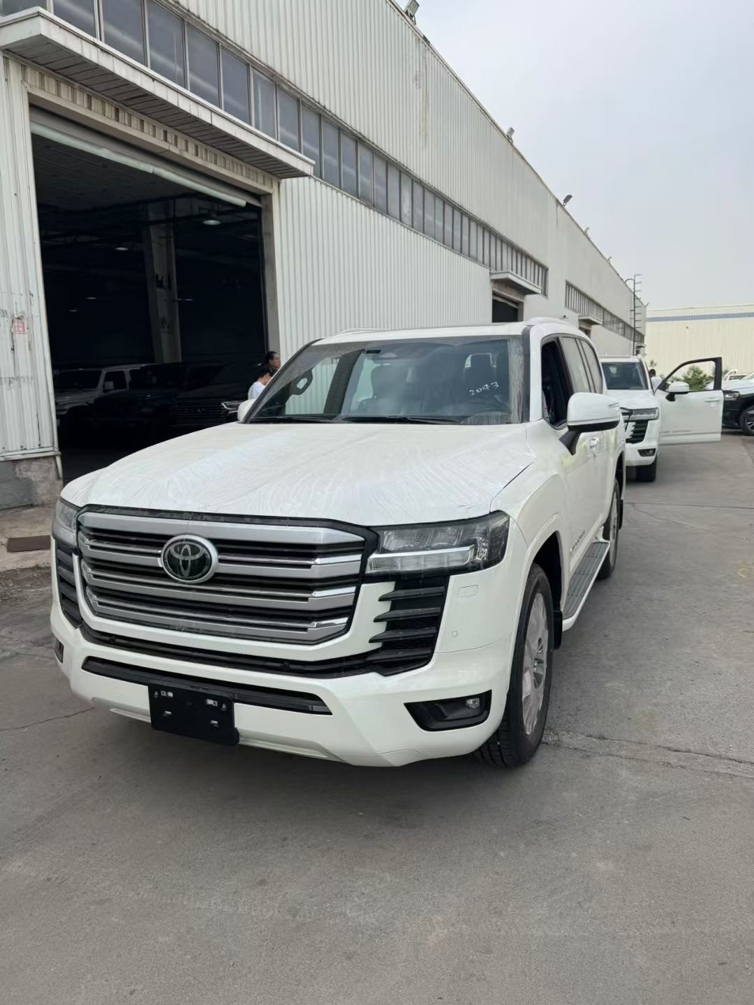 25款酷路泽LC300 3.3TT柴油酷路泽大科威特 满配 白/黑 💰💰92 增加配置: 遥控启动 液晶仪表 鲨鱼鳍天线 后尾门镀铬装饰条 后碰撞预警 主要配置:8气囊、7座、真皮座椅、265/55R20铝轮、天窗、一键启动、四门无匙进入、冰箱、前后大包围、镀铬中网、LED大灯、大灯清洗、航踏、行李架、四门迎宾灯、前排电动座椅、前排座椅通风、木纹内饰、JBL音响、12.3英寸中央显示屏、前4后4电眼、电动折叠后视镜、倒车影像、双差速锁、三种驾驶模式、蠕行模式CRAWL、多地形选择MTS、多功能木纹真皮方向盘、雷达测距、自动大灯、车道偏离预警系统、电动尾门、巡航、无线充电、前雾灯、拖钩、尾翼。
