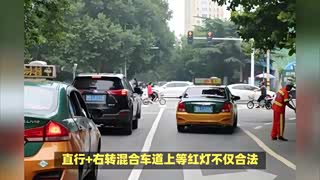 可以在直行+右转混合车道上等红灯吗?后车右转狂按喇叭怎么办