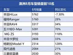 澳洲8月新车销量再创新高,皮卡包揽1、2、4名