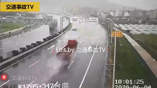 【交通事故】雨中高速,黑色轿车失控