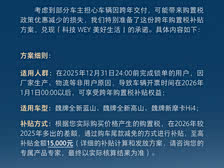 至高补贴金额 1.5 万元 魏牌新能源发布跨年购置税补贴方案