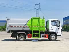 东风7方挂桶垃圾车,小型侧挂压缩垃圾清运车