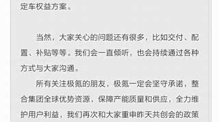 新闻快评:这张“致关注极氪的你”在我的朋友圈已然刷爆,曾经从极氪点评内容发布的关注程度上,早已预感它会火,但没确实没想到会火到售罄,从现象看本质分享3点,其一:现如今的一线自主品牌的产品力、设计、品质、工艺等方面已经超过大部分合资品牌。其二:同价同级当中,国内新生代消费者更愿意为“新年轻品牌”买单,注意,是新年轻品牌。这些品牌都比较关注“圈层和生活圈”。其三:以为售罄原因保留了车主的权益的同时停止收意向金的做法,站在消费者角度考虑,也为品牌积累口碑。毕竟很多常规认知中,部分厂商喜欢“圈钱”,管它能不能供货,我先收到钱再说。 今天的新闻快评就说到这儿,如果您对车圈新闻、汽车产品点评有想了解的,可给我留言。我针对大家关注内容,说些我的看法。
