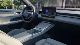 要知道荣威新能源轿车D7 DMH那个内饰思路是多少受了奔驰EQS的影响的,但是随后市场也证明奔驰造电车的设计思路也有很大的问题。 这也就铺垫在前,你们也就明白为啥我看到D6的内饰会心一笑了,因为D6的内饰回到邵大师的在D5X的水平上,线条的横平竖直的处理充满着平衡温馨,。 在窗沿和仪表台上沿都用了暗色的内饰材料来减少玻璃的反光,门板采用了拼色处理,车门开关是一个传统机械开关,内把手悬浮融合在储物槽的暗色空间中,双幅方向盘也采用了深色设计,手日常接触也不担心弄脏。 四面屏悬的中控屏非常轻盈,屏幕后方设计支架与中控台结合,矩形圆边的边框的处理很有科技的温润感。采用了隐藏式出风口的设计,但是保留着实体的空调调节旋钮,在简约风和易用性上完美平衡 尤其喜欢出风口那个金属质感的横梁,作为中控台的中央分割线,很好地衔接过度过渡好了,两个面,同时也又带来了足够的层次感 座椅的风格,有打孔的纹理,在A+级电轿这个价位算是一种轻奢的设计了,很像千鸟格纹理,后排这个仰角,再加上CTB技术的平地板,不太用担心坐起来小板凳了。 总而言之,D6的内饰,让我看到上汽设计一直以来的风格感受,就是质感不浮于表面,朴实但是扎实。