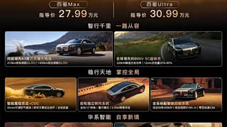 岚图追光L出价格啦,Max版27.99万元,Ultra版30.99万元。车漆给了六个,其中有两个拼色,大饼轮毂好看,中间的标还是悬浮的。 动力这块儿,全域800V、63度电池、5C超充,纯电续航410公里,综合续航1400公里。 配置说说差异,Max版华为全家桶、车载冷暖箱、零重力座椅都给了。 Ultra版在这基础之上,价格多了三万,但空悬、魔毯底盘+CDC、双主动降噪、后轮转向这些配置就都给配齐了。