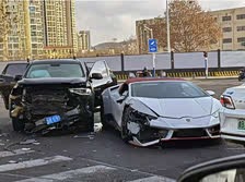 一辆兰博基尼跑车闯灯撞上SUV,交警:司机或因用临牌存侥幸心理