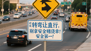 记住:转弯让直行,别拿安全赌侥幸!安全第一!.