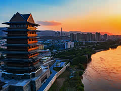 黄河楼,位于甘肃省兰州市七里河区黄河沿岸,是兰州市弘扬黄河文化的标志性建筑之一,集文化展示、民俗体验等多种功能于一体的综合性建筑。 登上黄河楼远眺,兰州美景尽收眼底,黄河汹涌澎湃向东流去,灯火阑珊,用光影绘制出了一幅绚丽多彩的美丽画卷。