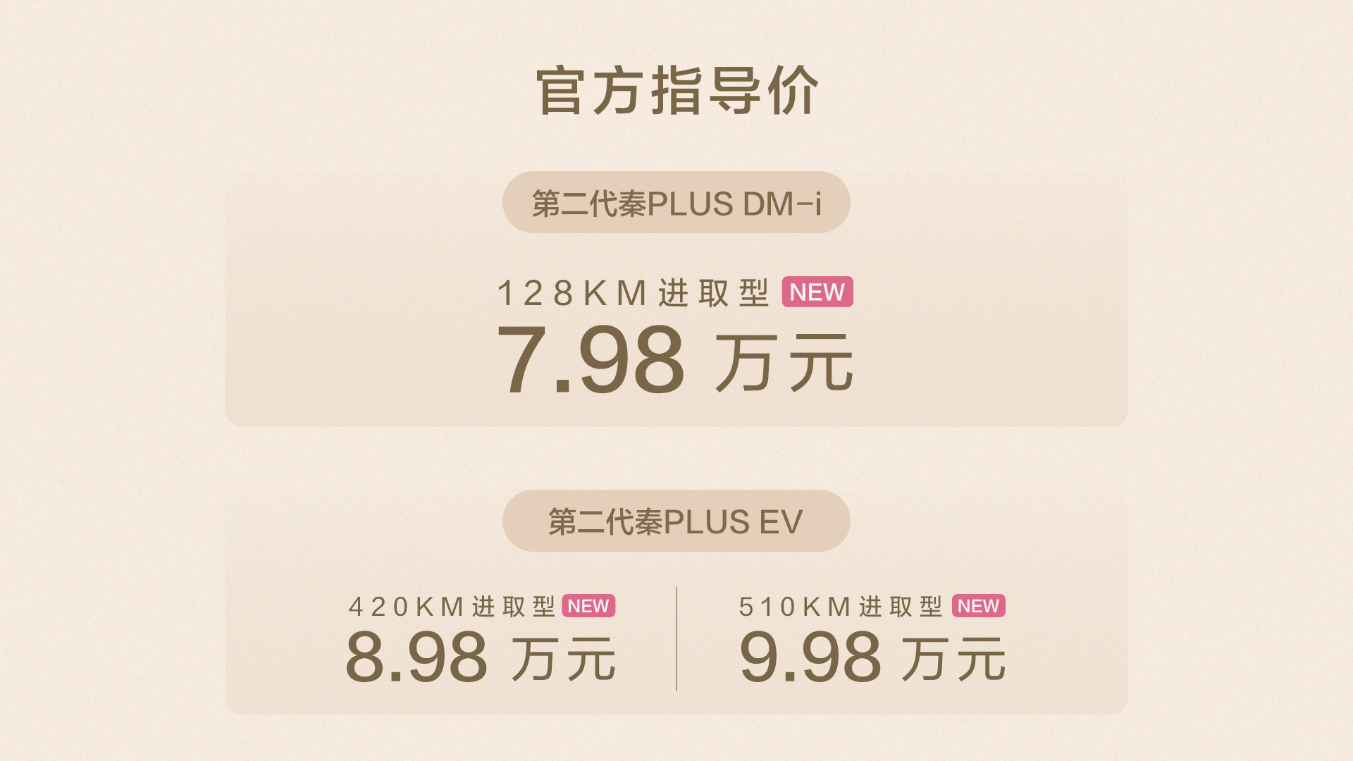 第二代秦PLUS这一次加推三款进取型车型,无论是DM-i还是EV,都改用了怀档,提升了驾驶的便利性,也更合理的利用了车内空间。 而且,除了本次加推的长续航版,纯电里程128km的秦PLUS DM-i进取型外,比亚迪同样也没有忘记老车主们,他们将对所有采用第五代DM技术的第二代秦PLUS DM-i进行OTA升级,升级后的NEDC油耗低至2.69L/百公里,技术平权毫不含糊,可谓是#节能省油全球王者典范 。 而这一次加推的EV版本,采用的是“刀片电池+八合一电驱总成”组成黄金搭档,续航达成率非常的高,哪怕是在北方的冬季也令人安心。 上新进取型、增加长续航、加推新车色、不断OTA、入门即高配,秦PLUS为用户提供了更安全、更智能、更便捷的用车体验,也让老车主不花一分钱,年年换“新车”