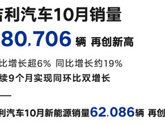 吉利汽车提前晋级年销百万辆俱乐部,其中10月销量180706辆