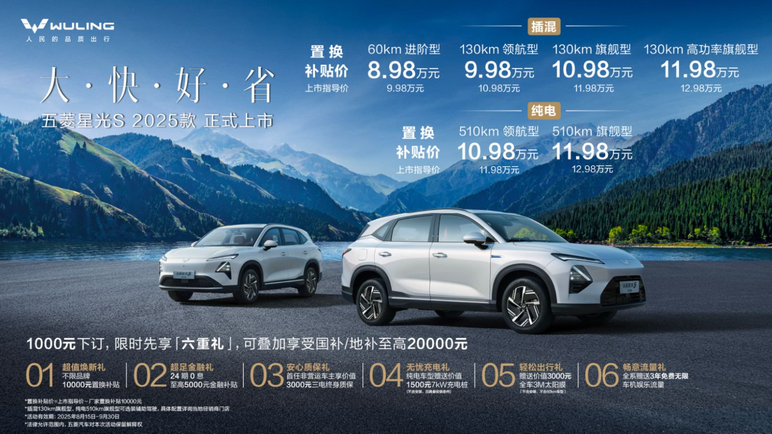8月15日,上汽通用五菱官方正式宣布五菱星光S 2025款焕新上市,置换一口价为8.98-11.98万。该车自从去年8月份上市以来,就凭借出色产品力赢得诸多家庭认可,稳居8-15万级新能源SUV细分市场第一梯队,而这次升级更是通过8大亮点来满足更多用户对品质的追求。 先从设计说起,这次五菱星光S 2025款将采用国际顶级的2K高透清漆,这么做就能够进一步提升外观视觉的高级感,这时再配合全新肤感内饰与配色,座舱氛围也同样更显豪华。而为提升实用性和舒适性,新增了50W风冷无线快充、DTS沉浸式音效系统等功能,在10万级SUV阵营颇具竞争力。 当然,动力部分也带来亮点,这次五菱星光S 2025款为满足年轻朋友对性能的高需求,搭载了1.5T高功率灵犀混动发动机,最大功率可达105kW,最大扭矩为220N·m,无论是高速超车还是满载爬坡都可带来强劲动力输出。不过能耗方面也无需担心,毕竟五菱星光S在吐鲁番高温情况下,百公里亏电油耗也低至4L,每公里成不不到3毛钱。 所以如果你打算在10万左右预算买一台品质新能源SUV,五菱星光S 2025款值得考虑,人民的五菱依旧值得信赖。