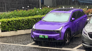 下着大雨看哪吒u,这款车在园区里已经停了很长时间了,应该是一款个人使用的车型。 这种车品质不敢多说,但性价比上没得讲。确确实实做到了十几万买一台纯电suv,在比亚迪跳水以前还是有性价比的,现在停产了,看他的新车哪吒L吧