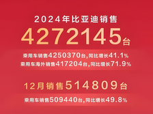 比亚迪太疯狂了!2024年销量427万辆,出口同比增长71.8%位居第一