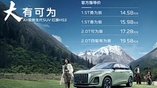 官方指导价14.58万起 红旗HS3正式上市 重定义A+级SUV