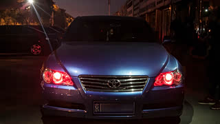 桑塔纳原车反光碗改灯加装双光透镜红色恶魔眼